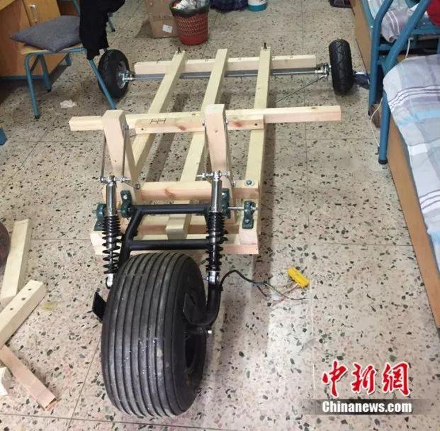 “其实最难的不是在这辆车的制作上,关键难在我是在寝室里面完成,要顾及同学,不能做得太过份,做到晚上就一定要停工了。”蒋皓住的是一间4人宿舍,室友们都是曾经的高中同学,大家关系不错。对于他造车的事情,蒋皓坦言室友们对自己还是很“宠”的,毕竟这么大一个制作工程,电钻什么的工具一齐上的话,有时候真的会很吵。好在蒋皓所在的宿舍位置比较偏,学校老师虽然知道,但也没有过多干涉。