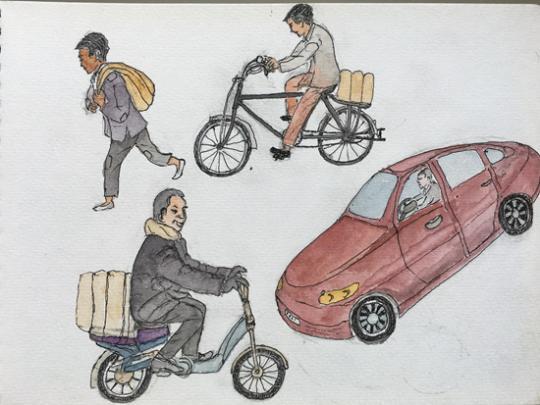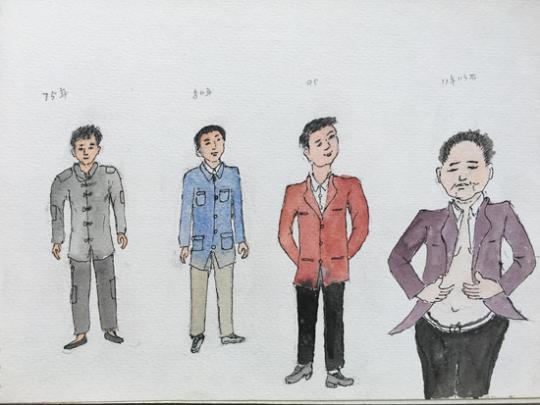 从上世纪70年代到现在村里男性服装的变化。焦金安/绘