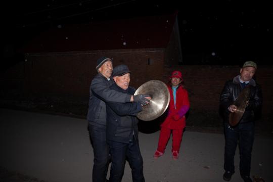 2019年2月7日,父亲的发小在教他打大铙。春节期间,村里的鼓乐队又敲起来了,父亲也想跟着打,但是跟不上节奏。