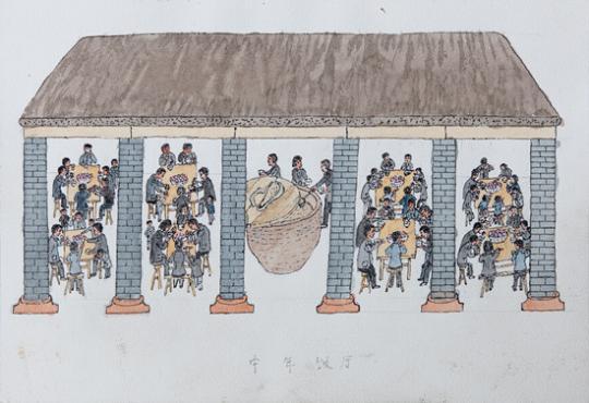 父亲画的最多的是幼年和青年时期的回忆。有他经历过的饥饿,有他参加过的劳动,也有他和伙伴们玩过的游戏……那些随着时代变化消逝在光阴里的场景,在他的笔下复活。