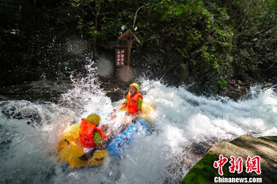 中新网清远6月28日电 (记者 程景伟)2019年广东省漂流大赛6月28日在广东清远古龙峡国际赛场拉开帷幕。本次大赛共有32支代表队参赛,最终杨桂贤、赵国材两名选手凭借主场优势,在全程6.1公里、落差达378米的赛道中,以14分21秒的佳绩夺冠。