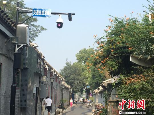 北京市东城区以雨儿胡同为试点,探索老城更新保护的路径。图为雨儿胡同内安装的停车非现场执法设备,主要为了保证胡同不停车。 中新社记者 陈建 摄