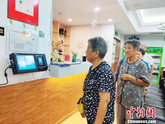 中午11时,“养老助餐,食堂”准时开餐。老人们有秩排队,刷脸后取餐。 叶秋云 摄