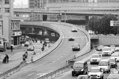 此外,由于该路段南北向主路为京广路地下快速通道,且紧邻上述开通的匝道,因此,车辆经过匝道下方时,往匝道西侧行驶,车流明显加大。