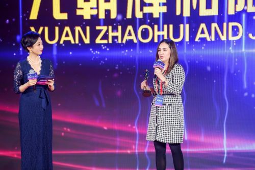 全国工商联原常务副主席孙安民(左)为穆索颁奖,中国葛洲坝集团国际工程有限公司党委副书记、副董事长、工会主席李萍莉(右)代替穆索接受颁奖。她说:孔拉水电站是“一带一路”上的一颗明珠,也是葛洲坝集团在阿根廷积极践行“一带一路”倡议的代表工程。