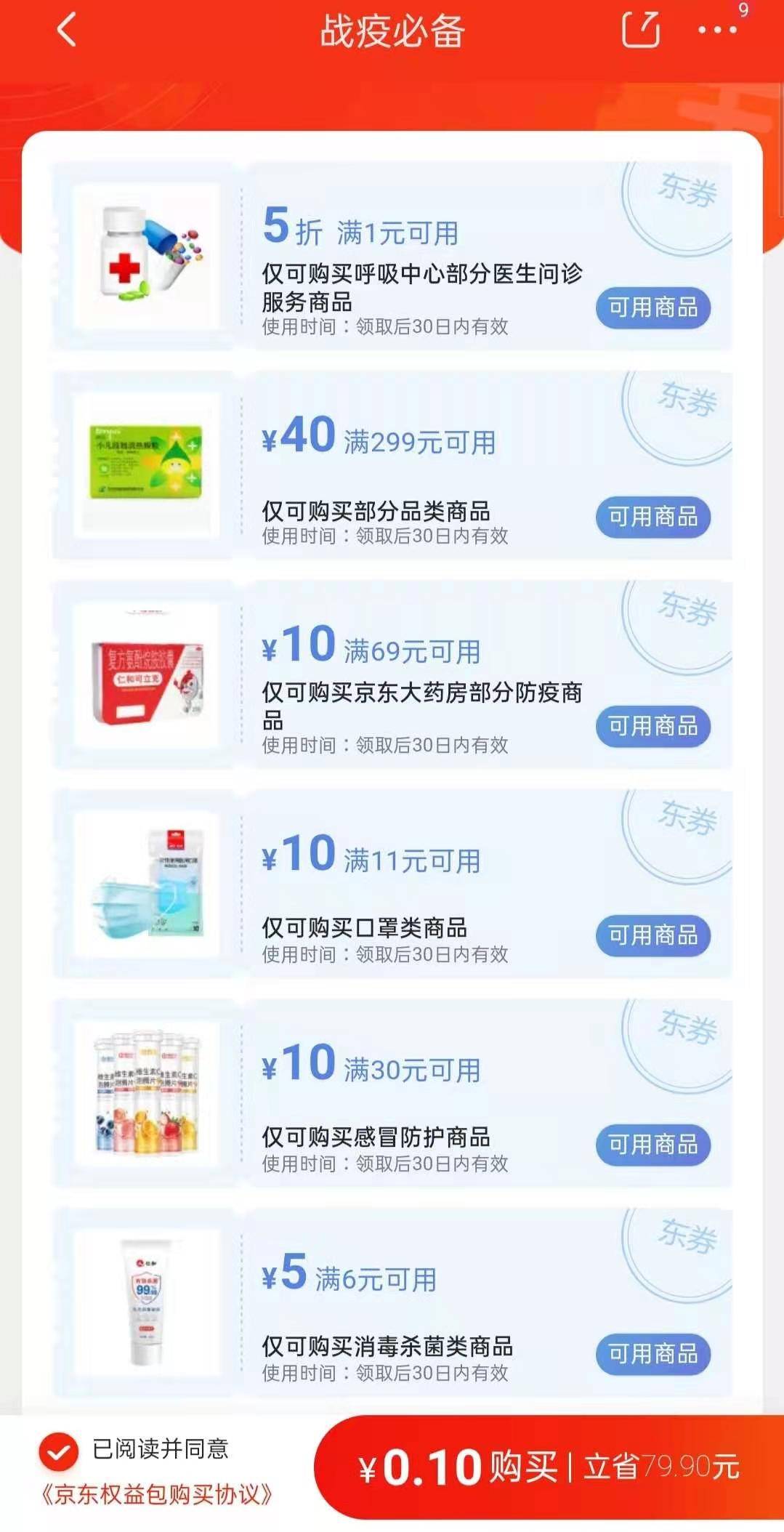 首先必须提到的就是“新春防疫省钱券包”!!特殊时节下,防护成了人们新的习惯,除了防护好自己的健康,大家也一定牵挂着家人的健康。所以趁着京东放出的这波福利,补充点防疫必须品还是十分必要的。这款礼包的售价也是非常的惊人!内含6张不同种类优惠券的礼包,售价仅要0.1元!!!即日起至2月28日,领取后30日内有效。具体价值我仔细盘算了一下,除了一张满1元打五折券以外,居然还能省下75元!在这六张优惠券种我首先要推荐的是满11减10的“口罩品类优惠券”,毕竟带好口罩,既能防护自己也能保护他人~这么优惠的折扣在手,整个春节的口罩都能一次承包~