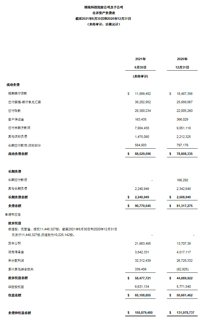 绿地科控首席财务官金京先生评论道:“2021年上半年我们取得了5,280万美元的收入和560万美元的净利润,与去年同期的收入和净利润相比分别同比增长两倍和三倍。第二季度毛利率为20.2%,与去年同期相比增长了280个基点。强劲的财务业绩不仅彰显了我们在满足高质量变速箱产品日益增长的市场需求方面的领先地位,同时验证了我们在应对供应链挑战方面的能力。今年6月,我们成功筹集了700万美元,募集资金将用于在美国推出新电动汽车产品的战略执行。凭借强劲的现金流和良好的收入记录,我们有信心成为新能源商用车的引领者。