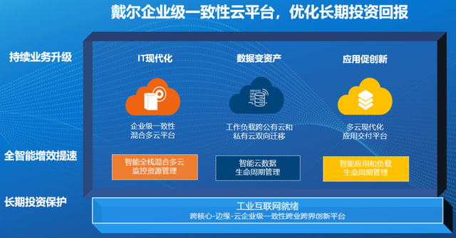 这方面,戴尔科技提供三大云平台技术组合:混合多云资源平台、数据平台和创新平台,可帮助企业轻松构建和运维具有公有云体验的私有云或混合云,真正提高业务敏捷性灵活性,同时降低总体云建设和运维成本。