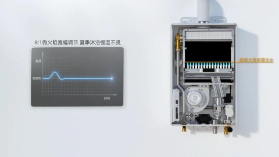 夏天洗澡水太烫,调小了又容易熄火?这项技术就是为了解决这一痛点。它能够稳定控制燃烧火焰至非常微小,实现,30℃的舒适出水温度。不论寒暑四季,都能享受刚刚好的恒温洗浴体验,夏天也能清凉爽快、不再担心被烫。
