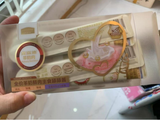 营养方面,配料表很扎实:50%全脂羊乳打底,保留了羊乳中的IgA、IgG免疫因子,帮助幼猫建立基础免疫力;30%马鲛鱼+15%鲜鸡肉,提供高蛋白和DHA,支持大脑和视力发育;再加2%鱼油,毛发亮泽度明显提升。实测粗蛋白≥45%,粗脂肪≥18%,符合幼猫生长需求,且无谷、无胶、无淀粉、无诱食剂,肠胃敏感猫也能放心吃。