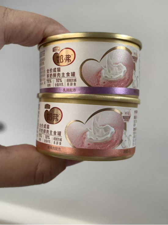 再看肉源部分——75%的鲜鸡肉含量,直接拉满诚意。麦富迪用的是凤祥家的鸡肉,厂对厂冷鲜直送,听起来就比那些冻肉边角料靠谱太多。开罐那一刻,扑面而来的是淡淡的肉香和一丝丝自然的羊奶甜香,完全没有腥膻味或化学香精感。肉酱是那种细腻顺滑的慕斯质地,不用拌粮,直接喂也很好入口,我家那位连舔三口才抬头看我,眼神里写满了“可以,继续”。