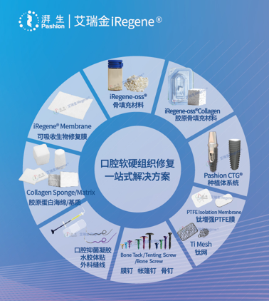 扎根口腔再生医学领域十余年,北京湃生艾瑞金已从单一的产品研发,逐步构建起覆盖口腔软硬组织修复全周期的综合服务生态!截至目前,已累计上市七项高端Ⅲ类医疗器械,包括胶原蛋白海绵、可吸收生物修复膜、骨植入材料、骨填充材料、口腔用骨填充材料、Pashion CTG种植体及缝合线,凭借扎实的产业化能力构筑起坚实的竞争壁垒。