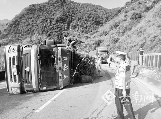 张某说,事发当日一早,他驾驶着云RXXX号中型普通货车从腾冲收费站进入杭瑞高速路,往大理方向行驶。在上午7时55分左右,当车辆行驶至杭瑞高速路K2686+300米处(保山至大理方向老鹰岩一号大桥)附近时,在下坡右转弯过程中,因操作不当导致大货车失控。“当时由于下着小雨,感觉路面有些湿滑,可能是车速过快的缘故,在一个转弯中突然车子就不听使唤了。”张某回忆,货车失控后先是与中央隔离墩相刮擦,在接连撞飞数百块防眩目板后一头侧翻在了路中间。与此同时,被大货车撞飞的一块防眩目板击中了另一条车道对向行驶而来的一辆小型越野客车,所幸未酿成更大的事故。