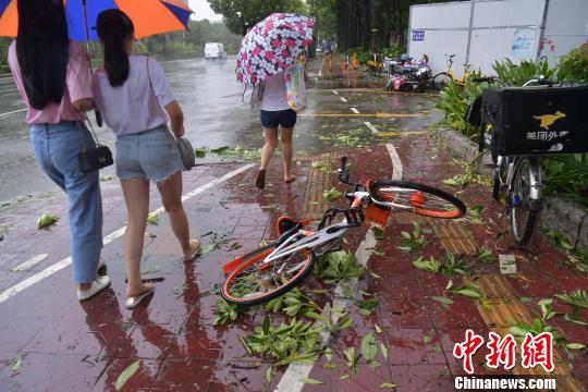 中新网深圳8月23日电 (陈文 年路瑶)今年第13号台风“天鸽”23日上午给深圳带来狂风骤雨,记者在市区看到,树枝折断公交车遇阻、共享单车倒地、垃圾桶横滚。与此同时,深圳全城进入紧急防御状态。