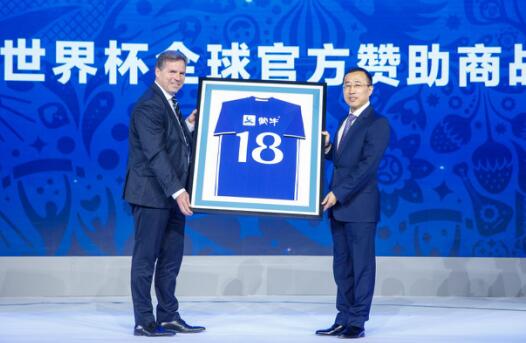 国际足联向蒙牛赠送象征2018,的18号球衣