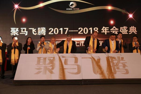 在致辞结束之后,聚马的各部门领导们集体上台,与上千人共同见证了现场的金沙仪式和敲锣仪式,并在挂牌横幅面前进行了集体合影。