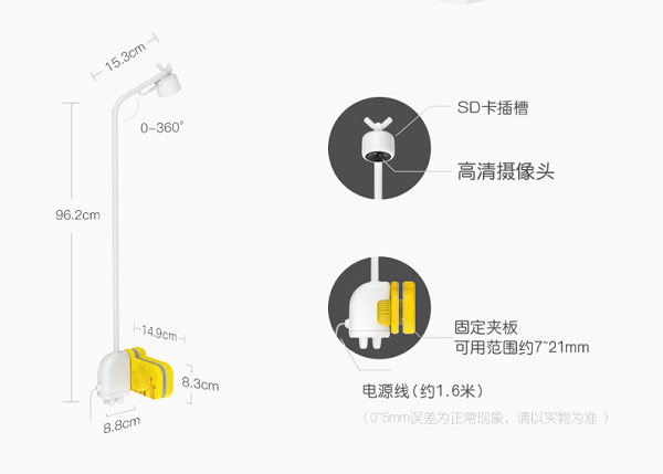 借助长颈鹿造型般的软管可随意调试至合适的看护角度,从空而降360度全方位无死角记录宝宝的瞬间,配合APP上多元化的滤镜和魔法表情功能,一键分享朋友圈及APP。