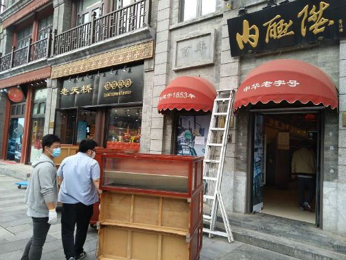 约一周前,记者走访前门大街时,上述被提及的几家老字号商铺仍然在营,但玻璃门窗上张贴了标记“前门文化体验街区”的遮挡纸。苏州稻香村前门店的工作人员将全部货品由室内搬出,店内工作人员表示,门店仅是进行重新装修。据了解,该商铺为苏州稻香村品牌经销商在经营,记者通过苏州稻香村公司联络该经销商问及门店清退或升级一事,不过该经销商称“不方便接受采访”。