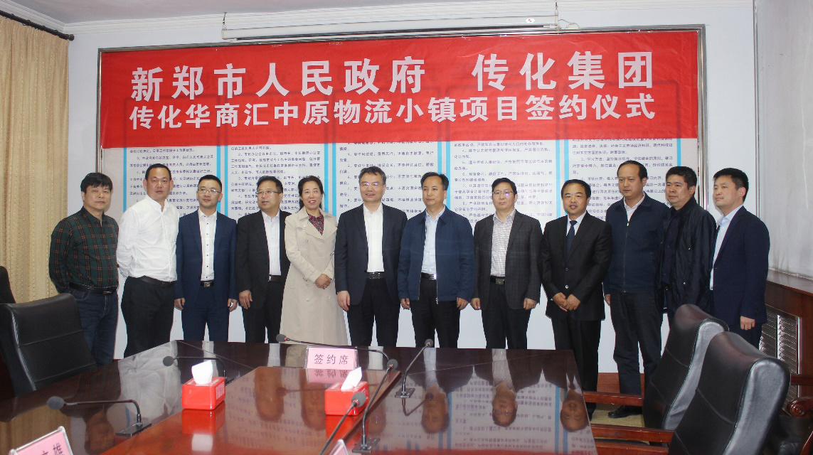4月16日上午,由传化智联与华商汇集团联合打造的传化华商汇中原物流小镇项目与新郑市政府签订项目投资协议。新郑市委副书记、市长马志峰,市委常委、常务副市长王智明,市人大常委会副主任彭德成,副市长李猛,传化集团董事长徐冠巨,华商汇集团董事长庞继红,传化集团,副总裁李绍波,传化集团河南大区总经理叶文雄,华商汇集团副总裁王继正、薛春幸等出席签约仪式。