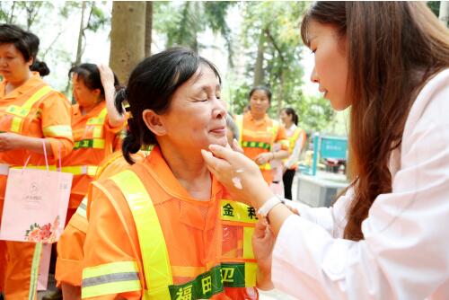 4月28日悦目佳人义工团开展了以“关爱城市美容师,你美化城市,我美化你的肌肤”为主题的公益活动,给城市美容师们带来满满的爱心和小礼品。虽然日常的工作繁琐枯燥,还是希望他们能像用心美化城市一样,呵护自己的肌肤。