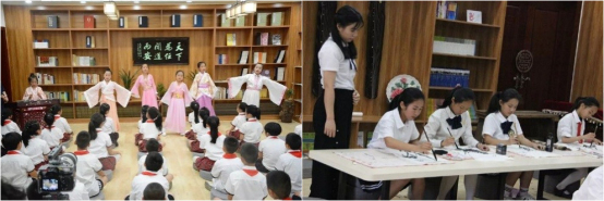 厦门天安小学的孩子们向来宾兴致勃勃地展示了国学精粹。吟诵《百家姓》,以载歌载舞形式展现古典诗词的魅力,闽南语社团的孩子,用方言吟诵古诗。国学剧社团老师和孩子们以自编自演的方式让历史人物变得鲜活起来,来宾们纷纷赞叹孩子们精彩的表演,期待着孩子们在这间国学教室里得到经典的浸润,茁壮成长。