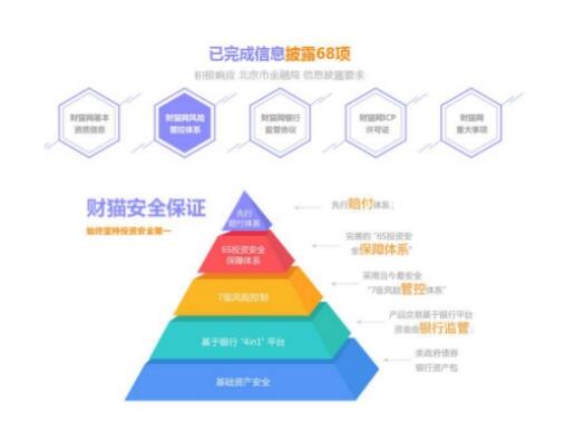 平台的信息披露越透明,投资者就对平台的信息了解的更加详细,投资者也就更加放心的进行投资。以财猫网为例,财猫网在官网披露了68项信息,从银行资金监管、ICP经营许可证、监管部门备案、基础资产升级、信息披露、电子签章、风险测评、网站诚信证书等主要监管合规项进行了详细披露,投资者进入官网即可查看,而且目前该平台的备案进度也已经公布,平台各项指标已经基本达到监管部门要求,正在等待备案验收,更加给了投资人信心。