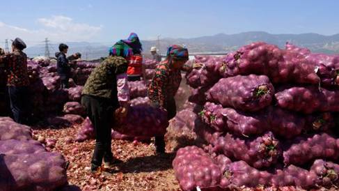 美菜网基地采购总监李宝林今天到达了现场,据他介绍,洋葱主要有甘肃和云南两大主产区,而凉山虽为较小的产区但担负着在甘肃和云南两个产区货品衔接不上时供应市场的任务。因为去年洋葱行市很好,于是,甘肃和云南两个产地农民扩大了种植规模,两个产区的货品上市时间出现交接,客商集中在这两个产地,凉山的洋葱自然被忽略了。