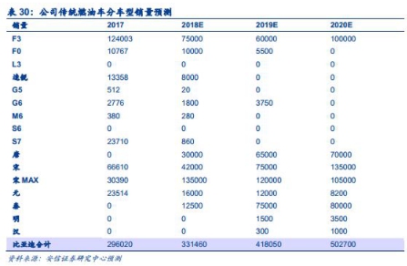 传统燃油车竞争乏力,爆款车型,。公司09年凭借F3和F0超高的性价比和较好的实用性意外走红,后来销量一路走高,至13年探顶突破50万辆年销量,随后不可遏制的开启下滑之路,至17年已经不足30万辆的年销量。这主要是因为过去公司过于激进,盲目扩张和压货,导致产品内耗严重、经销商“退网”和产品质量较差。观察近三年公司所有燃油车的销量情况,可以看到除了售价仅四五万的经典老车型F3仍可以稳定的维持在月销5千-1万辆的水平和新近上市的宋MAX销量维持在一万五,已经没有其他销量过万的车型了,缺少爆款车型,导致公司燃油车的品牌形象和盈利均出现下滑。