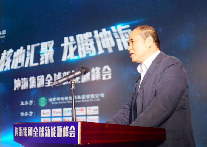 出席本次会议的有湖南省原副省长、中国通用技术集团原董事长、党委书记贺同新,国家能源局原副局长吴吟,国家发改委能源研究所原所长韩文科,全联新能源商会专业副会长曾少军。在本次高峰会议上,坤海集团董事长龚胜作为主办方致辞。他表示,坤海集团自成立以来,始终坚持以国家政策为指引、以服务三农为导向、以合作共赢为宗旨、以创新为核心、以品牌运营为手段、整合全市供销社系统资源,利用互联网+供销社+智能油站+便民超市相结合的发展模式,打造一站式为农服务综合平台。并指出,坤海集团在国家“十三五”政策的指导下,利用实体+互联网模式,以实体落地为核心,坚持解决人类生态环境为使命。