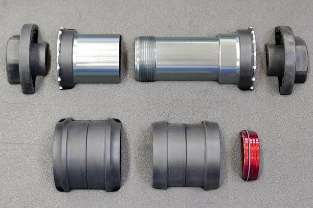 为了保证复杂路面时的骑行强度,两款车也都使用了前后12mm的铝合金桶轴轮组。在车架方面也都使用了全车内走线、锥形头管、螺纹对锁式中轴等技术。这里应该鼓励一下UCC,最近才兴起的螺纹对锁式中轴能有效解决传统压入式中轴的异响,并有效提高中轴的整体性,提高踩踏刚性。UCC这一个细节,的确走到了世界前列。