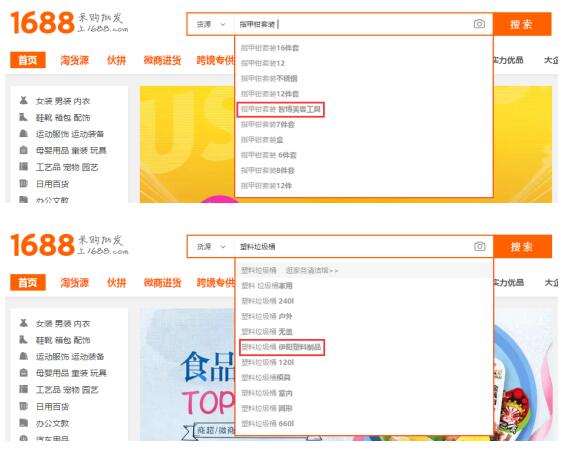 1688搜素下拉框中的关键词,至今多数买家都会认为是1688推荐的结果或众多买家选择的结果,从众心理也会让他们选择这些词来进行搜索,所以买家非常信任1688下拉推荐的信息。