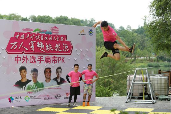 6月3日,在五柳湖举办的中外选手花式扁带和走扁带表演,同时邀请了6名来自西班牙和国内的,选手。整个水上花式扁带活动整整持续了1个小时,选手们在扁带上施展的高难度动作引来全场观众的阵阵喝彩。花式扁带追求的不是更高更长更远,而是基于静态扁带逐步完善的一种玩法,选手把高难度的杂技动作搬上扁带,弹跳、转体、空翻等等。