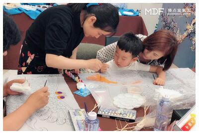 活动现场,孩子们认真地听着老师为大家讲解风筝制作的知识和流程。在动手环节上,家长和孩子们一起在风筝上绘画,在风筝上涂各种绚丽的色彩。活动现场每个家庭彼此配合默契,来自不同家庭的小朋友愉快交流,形成了一幅幅温馨有爱的画面。