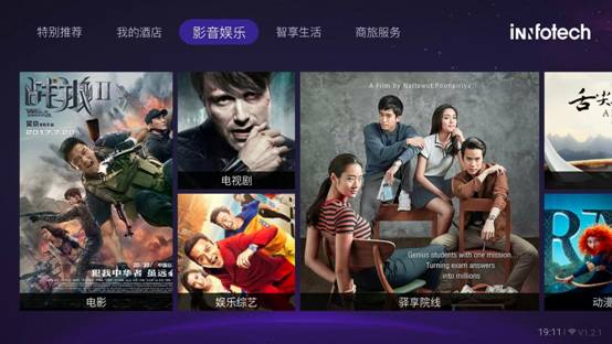 智驿信息充分挖掘用户的娱乐需求,顺应用户习惯,淘汰了数字电视时代的酒店电视,以智能电视为载体,采用交互式的移动互联网技术,使得用户可自行搜索选择观看影视内容。而超5000部电影,10000余集电视剧的影视资源储备为宾客提供了海量的观影选择。