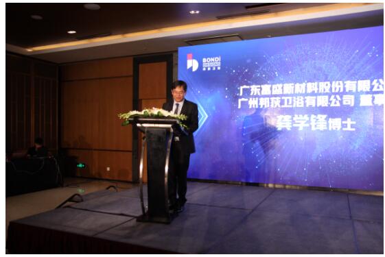 在现场,邦荻卫浴创始人兼董事长龚总亲自致欢迎词,并为到场嘉宾做了以“大环保新风口卫浴品类的材料革命”为主题的演讲,深度诠释了在新时代大环保的整体环境下,卫浴行业也将迎来了新风口的趋势,而人造石新材料的出现更为卫浴品类升级打开了材料革命的新大门。报告整体展示了邦荻卫浴独到的市场视角与战略眼光,分享了许多新鲜的行业资讯。作为新材料行业的领军品牌,邦荻卫浴始终坚持为每个家庭提供安心可靠的卫浴产品,并走在低能耗,零污染的环保领域前端。