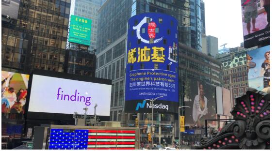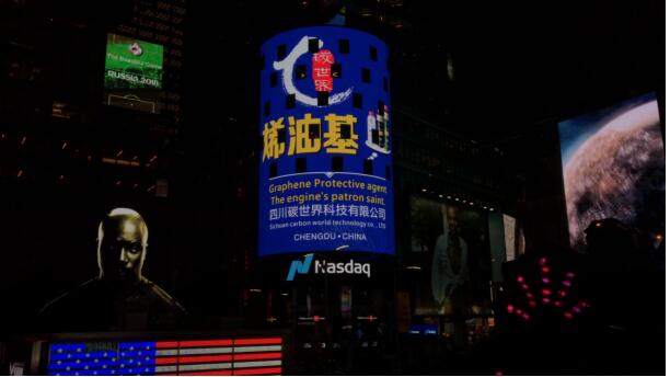 美国东部时间2018年6月18日,作为本次展示活动中国石墨烯行业,入选企业,四川碳世界科技有限公司高科技产品“烯油基”意外入选登上纳斯达克大屏,引起强烈轰动。