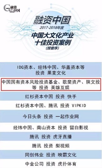 英雄互娱荣获“融资中国2017-2018年度中国大文化产业十佳投资案例”