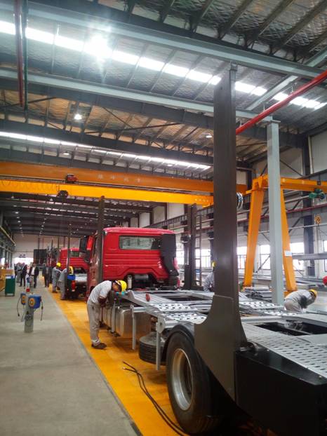长久中置轴轿运车的平台升降机构采用的是丝杠升降机构。丝杠带有自锁功能,无需加装限位销轴,安全可靠,便于操作。牵引车与挂车之间采用“牵引球+稳定摩擦盘”耦合式牵引装置。该装置能防止车辆在行驶过程中因转弯或变道时挂车甩尾及侧翻,有效提高中置轴挂车侧向稳定性,实现行车不侧倾,安全有保障。