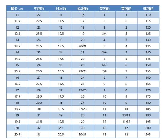 此外,还有很多国家的儿童健康鞋码数是不一样的,附上比较全的一份中外鞋码对照表,供大家查看: