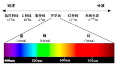 光由于波长不同,就导致它们本身的颜色各不相同。比如说大家熟悉的紫外线吧,它的波长小于400纳米,大概是什么情况呢?这里有一幅图可以供大家参考。