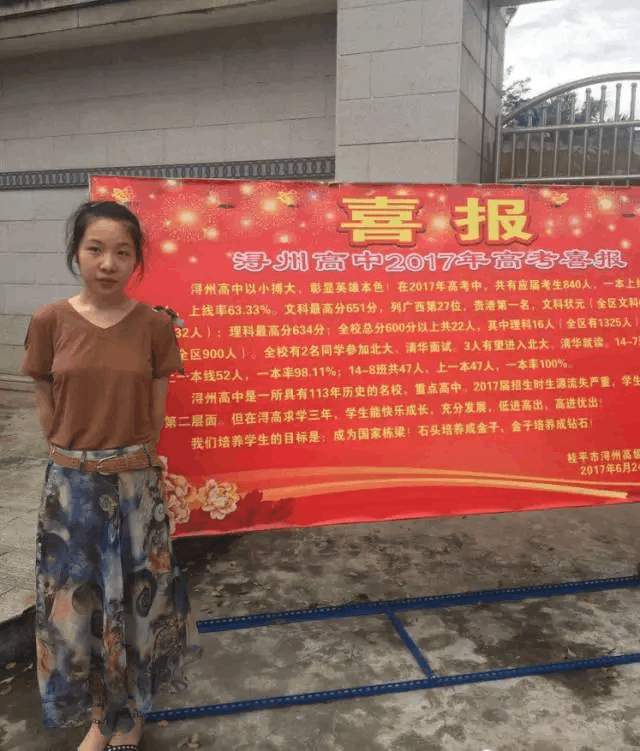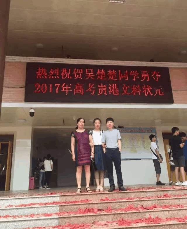 在6月23号的中午,我听见他们学校的校长,还有老师发来贺信说的时候,说楚楚是整个贵港市的文科状元,其实我当时真的是有一种。好像我抬头都可以看见上帝在对我微笑的那种感觉。