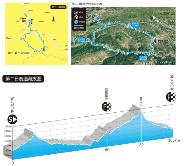 第三日为从香巴拉广场到冶力关的109KM点对点比赛,最高海拔3574米。