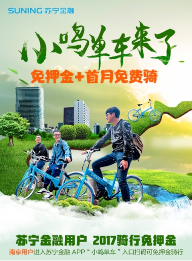 自7月12日苏宁金融与“小鸣单车”展开全面战略合作后,很多南京市民都在街头看到了小鸣单车蓝色的身影,下载苏宁金融APP扫码使用,在体验智慧出行的同时,更能享受到诸多优惠及福利。