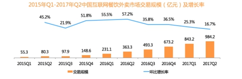 2017年的互联网市场似乎已经被共享单车占据,一轮轮的融资和刷屏让我们也已经有些审美疲劳。所以,当众多数据分析公司陆续发布了2017年半年/二季度在线餐饮第三方平台市场数据,大家都为之眼前一亮。