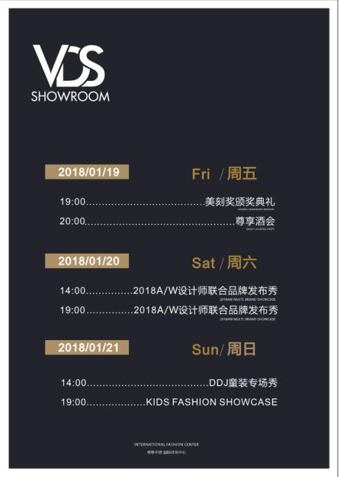 “中纺国际时尚, · 东方米兰慢生活区”开幕大秀于1月19日正式启动,1月21日,落幕,本次活动由国际创意设计-”美刻奖“总决赛暨颁奖典礼、VDS FASHION SHOWCASE联合新品发布秀、KID FASHION SHOWCASE儿童时装发布秀三大板块组成。
