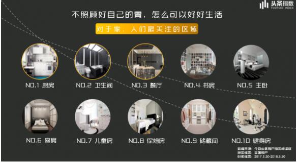 根据头条指数监测数据显示,对于家,人们最关注的区域是厨房。如今厨房已经成为享受快乐、展示厨艺的生活空间,是家庭生活重要的场景之一。现代厨房不再是单一的烹饪空间,已逐渐成为重要的家居空间,成为人们的第二客厅。