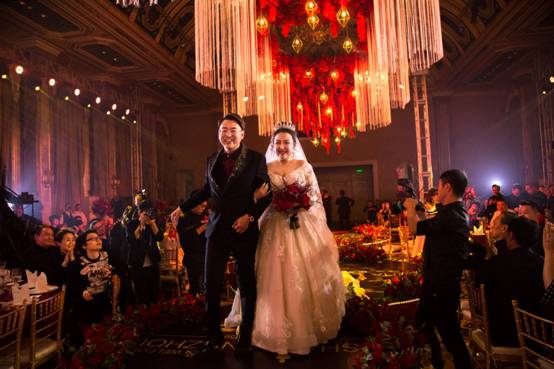 此次婚礼别出心裁地使用了“奥斯卡”主题,邀请了200多位影视圈内挚友到场,众多影视明星与配音大咖纷纷走上红毯仪式并在签名墙上留念,为二位新人留下最美好的祝福。