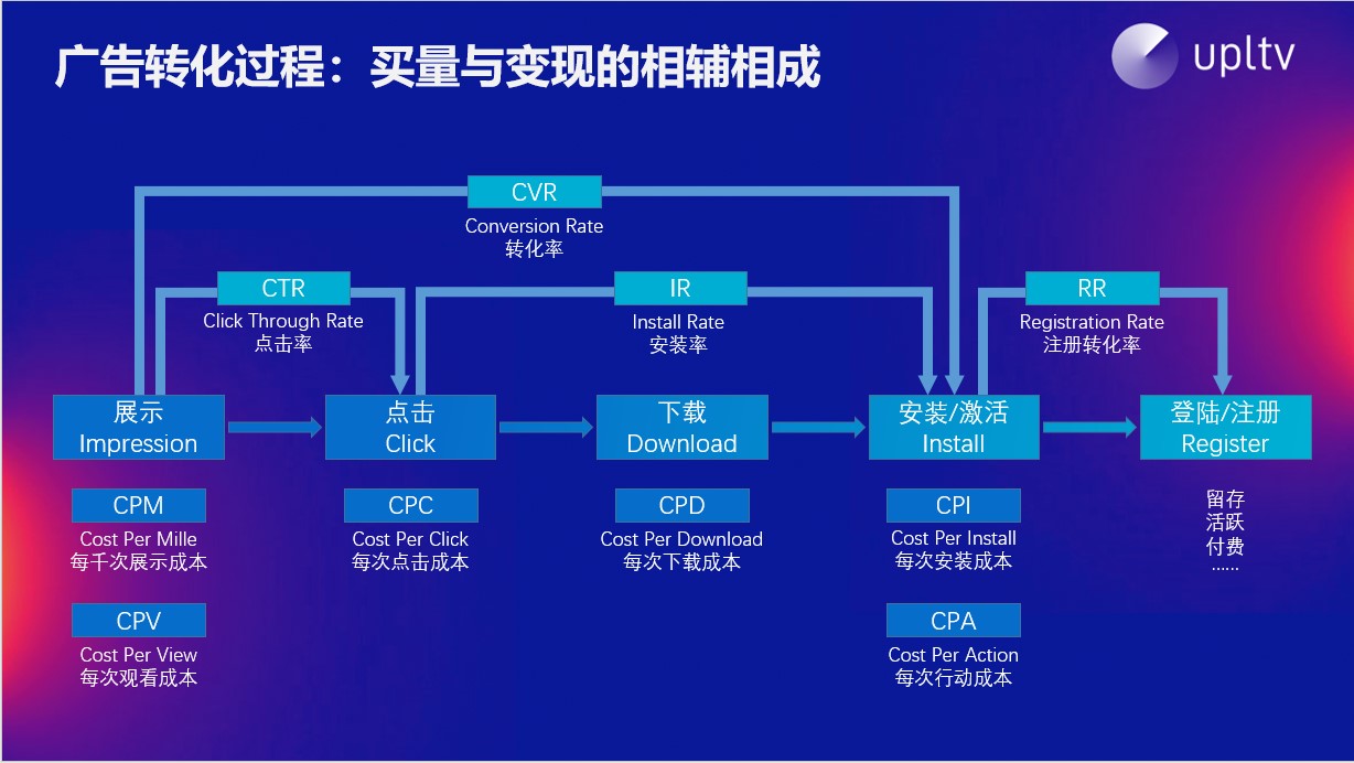 我们从广告转化的过程,不难发现买量与变现是相辅相成的关系。UPLTV发布的用户级广告收益拆分功能——UART(User-level Ad Revenue Tracking),彻底革新了以广告变现(IAA)为主游戏的买量模式。可以有效预估单个用户带来的广告收益,通过ROI调整优化Campaign,利用种子用户功能定位广告高价值用户,帮助市场推广人员获取更高广告变现价值的用户,提升买量效果,助力实现,化变现,形成买量和变现双向正循环。
