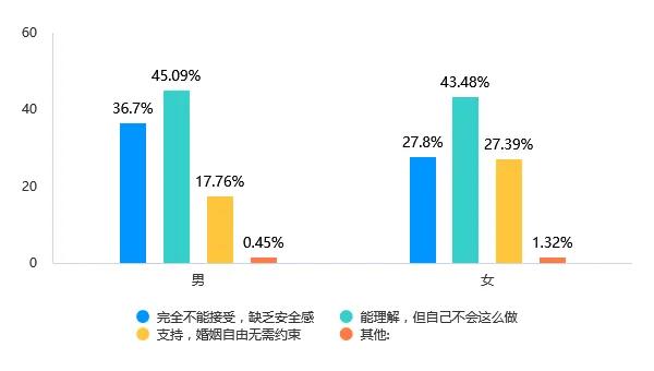 女性受访者中27.39%支持该形式,而男性仅17.76%,且女性对不领证的接受度在性别维度呈现更开放态度。