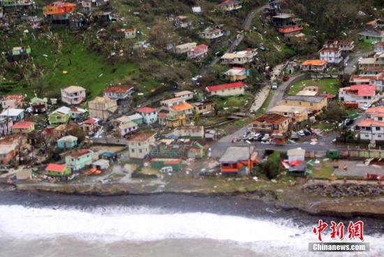 当地时间9月19日,航拍多米尼加飓风灾区。18日晚,超强飓风“玛利亚”以四级风力登陆加勒比海地区岛国多米尼加,造成极大破坏。图片来源:视觉中国